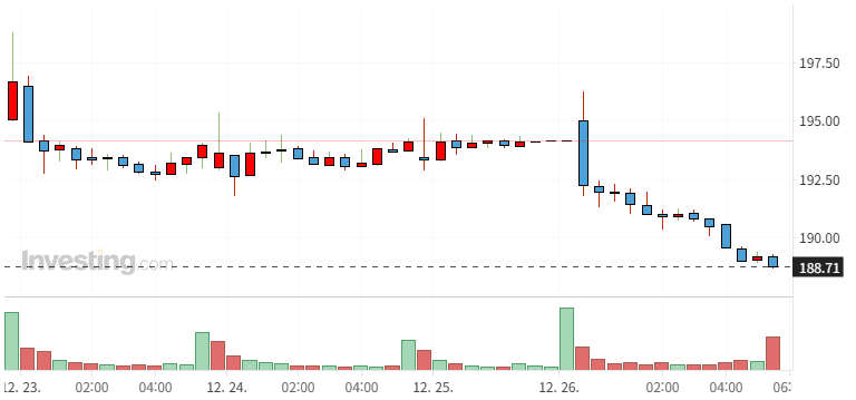 | $196.35 | $188.71 | -2.81% |